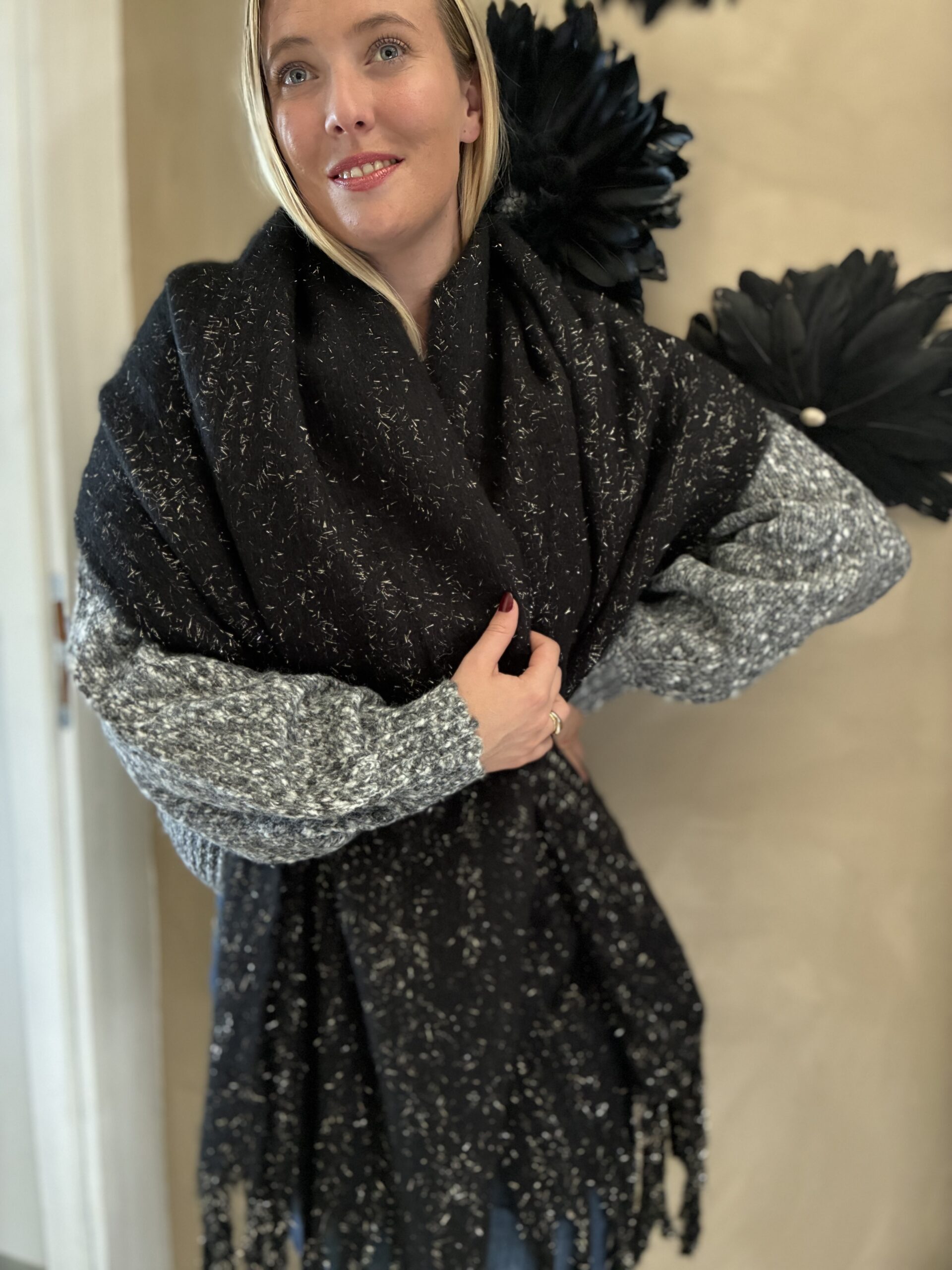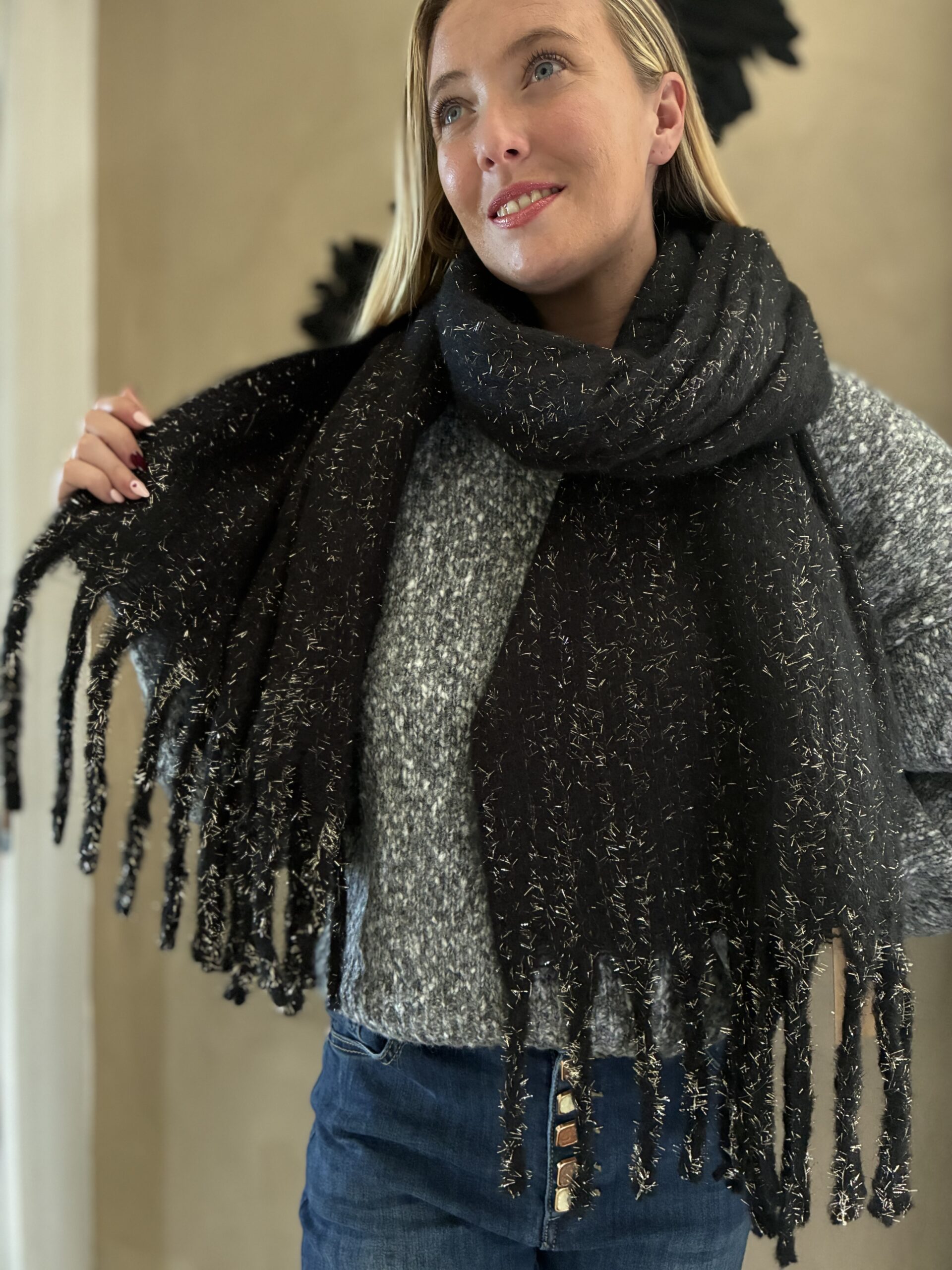 Foulard écharpe femme en laine et lurex, chaud pour l’hiver collection Automne/Hiver 2025/2026.