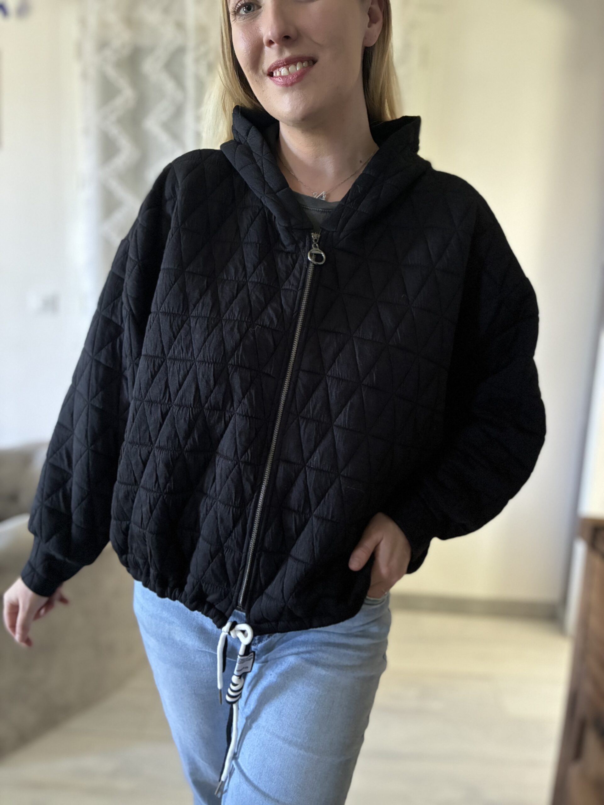 GILET NOIR A CAPUCHE