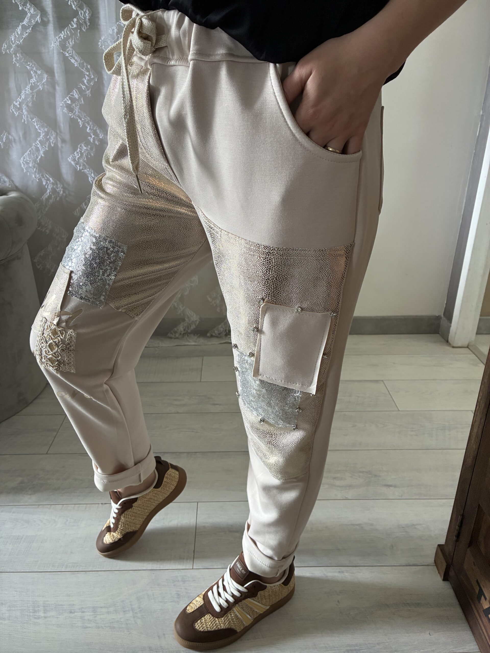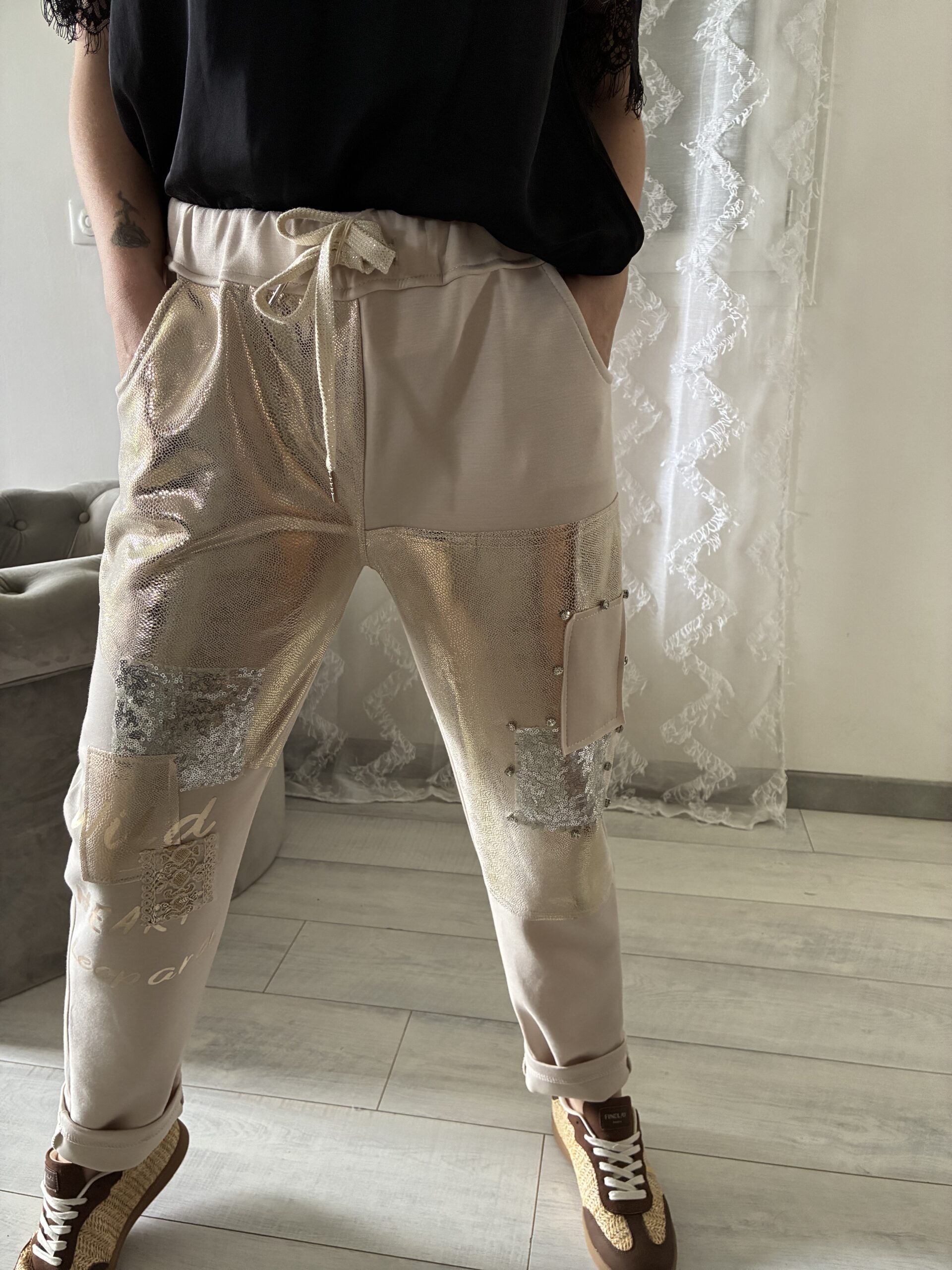 PANTALON A PAILETTE SUR LE DEVANT