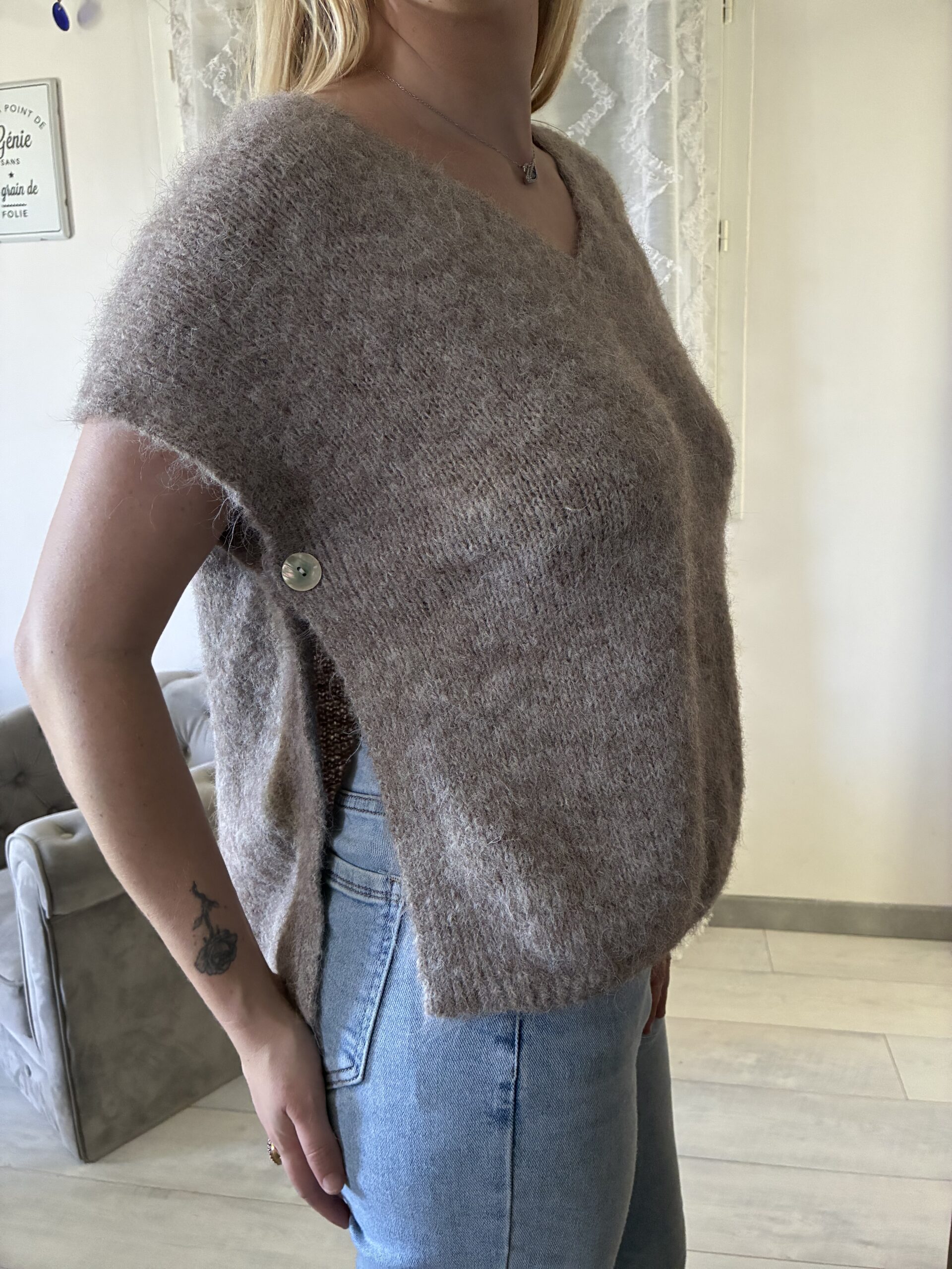 Pull poncho sans manche en maille douce, fermeture sur le côté par un bouton