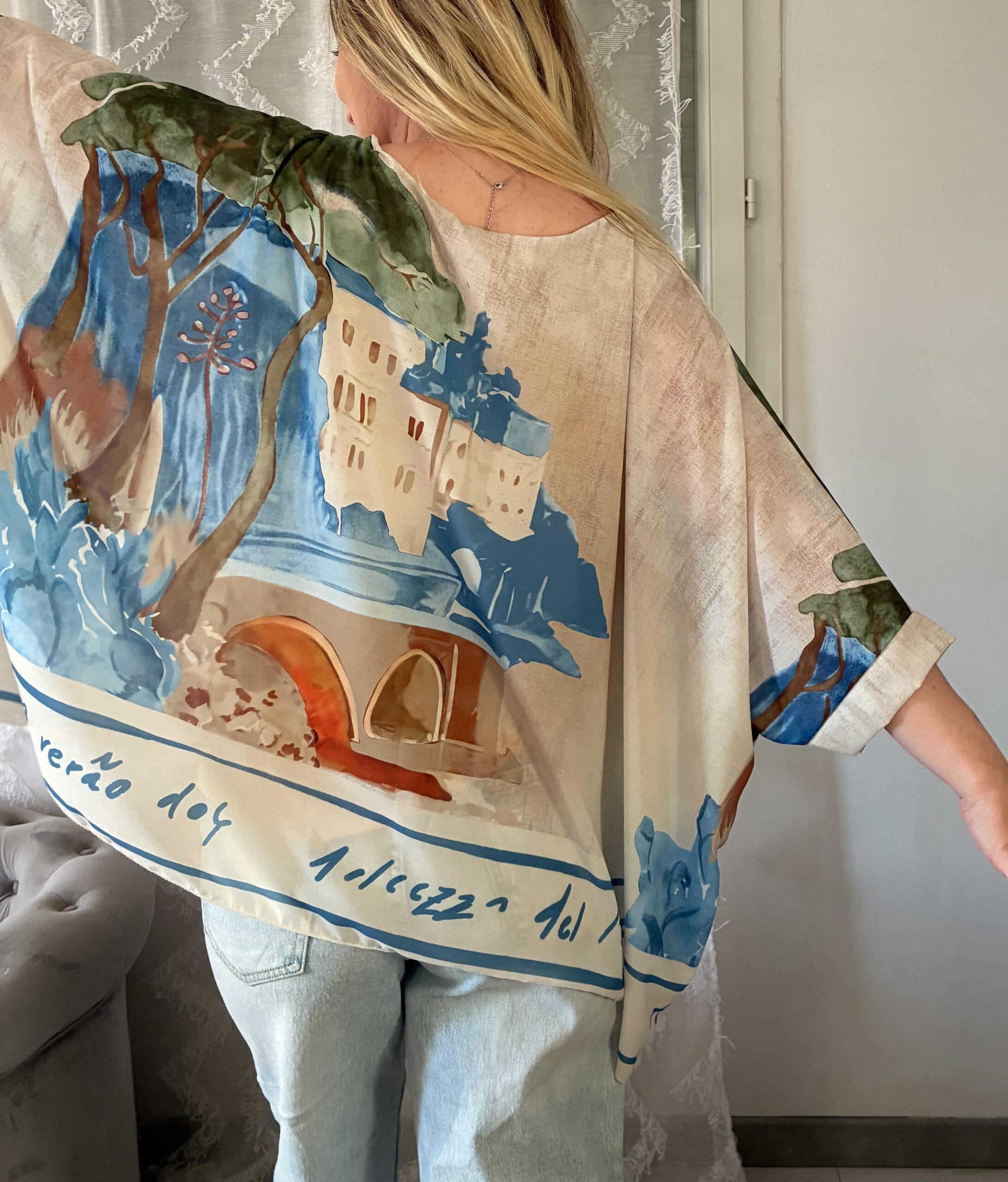Top a manches 3/4, taille oversize et motif imprimé, doublure intérieur